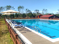 錦鯉游泳池含游泳池池體、上下水扶梯、池邊通道及安全護欄、全套水處理系統、標準清污排污設備本系統能夠保證泳池標準使用功能,其中泳池池體構造包含泳池池身框架結構、內外圍板、池內防水膠膜和溢水槽,池體尺寸規格齊全;水處理系統按國家規范設計和配置,含有循環過濾設備、消毒設備、自動投藥設備,水質達到國際泳聯標準。